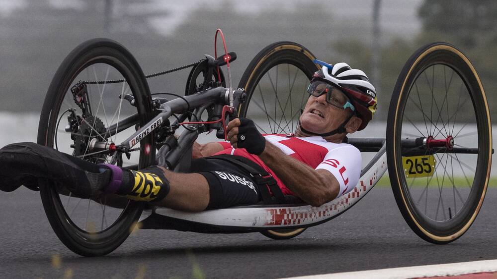 63 years old Heinz Frei won silver in the hand-bike race category H3. August startet er deshalb nochmals an den Paralympics in Tokio. Sommer-Paralympics in Angriff nehmen.